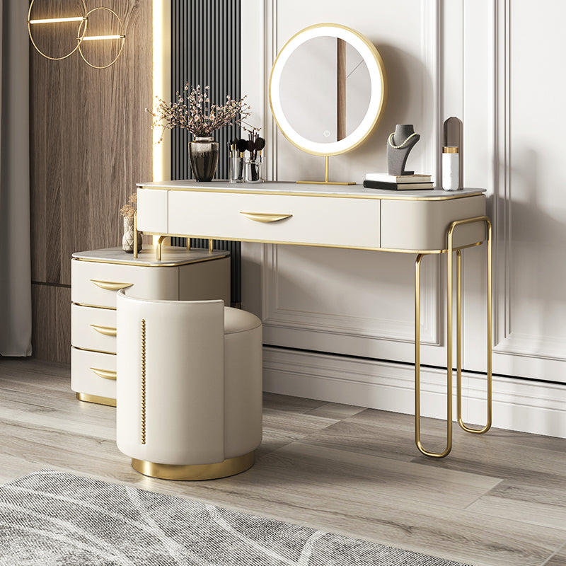 4 Storage Drawers Makeup Dressing Table Stool Set, 29.52" Tall