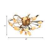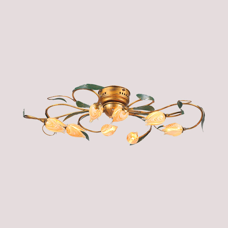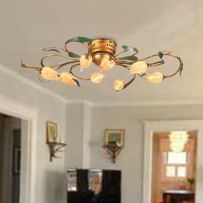 8/15 Heads Ceiling Mounted Fixture American Garden Bedroom LED Semi Flush Light with Tulip Frosted Glass in Brass Clearhalo 'Ceiling Lights' 'Close To Ceiling Lights' 'Close to ceiling' 'Semi-flushmount' Lighting' 401405