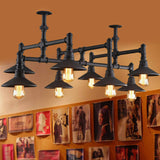Black Piping Pendant Lighting Industrial Iron Black Finish Chandelier with Conical Lampshade