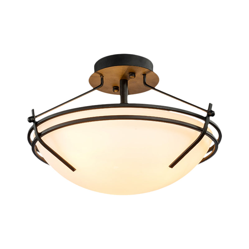 Bowl Bedroom Semi Flush Mount Traditional Opaque Glass 3 Heads Black Ceiling Light Fixture
