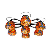 Bowl Stained Glass Ceiling Fixture Tiffany 3/7/9 Heads Red/Orange/Green Semi Flush Mount Light Fixture 7 Red Clearhalo 'Ceiling Lights' 'Close To Ceiling Lights' 'Close to ceiling' 'Glass shade' 'Glass' 'Semi-flushmount' 'Tiffany close to ceiling' 'Tiffany' Lighting' 315948