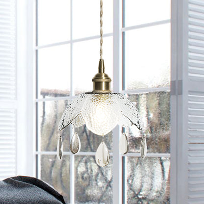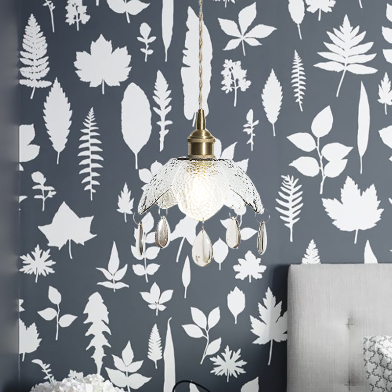 Brass Scalloped Bowl Hanging Lighting Vintage 1 Bulb Clear/Smoke Gray Water Glass Suspended Pendant Lamp Clearhalo 'Ceiling Lights' 'Close To Ceiling Lights' 'Glass shade' 'Glass' 'Modern Pendants' 'Modern' 'Pendant Lights' 'Pendants' Lighting' 737002