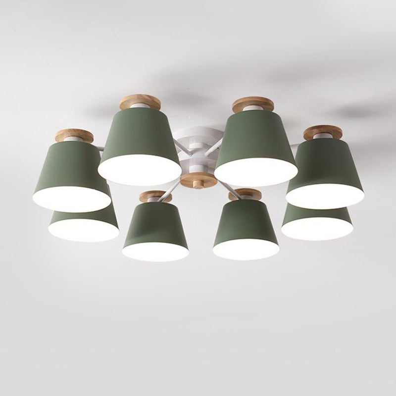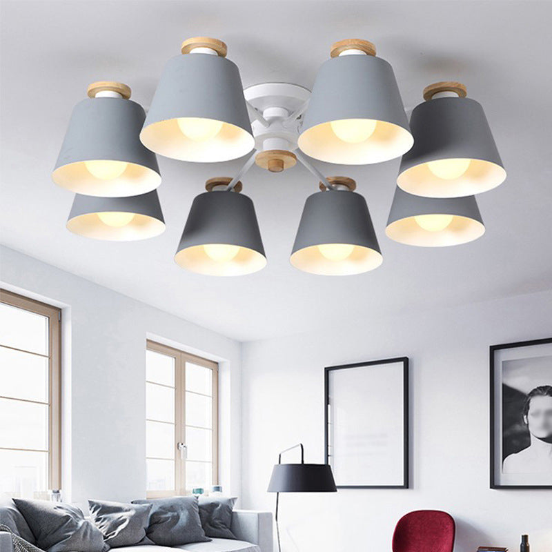 Bucket Semi Flush Light Fixture Simple Metal Living Room Ceiling Lighting with Wood Top Clearhalo 'Ceiling Lights' 'Close To Ceiling Lights' 'Close to ceiling' 'Semi-flushmount' Lighting' 2011077