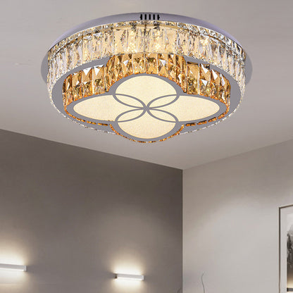 Clear Cut Crystals Circular Ceiling Light Modern LED Bedroom Flush Mount Lamp in Stainless-Steel with Flower/Square Design