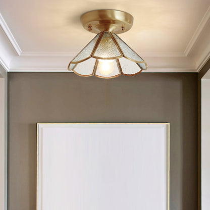 Conical Foyer Ceiling Mounted Light Vintage Glass 1 Bulb Brass Flush Light with Scalloped Edge Clearhalo 'Ceiling Lights' 'Close To Ceiling Lights' 'Close to ceiling' 'Flush mount' Lighting' 2461799