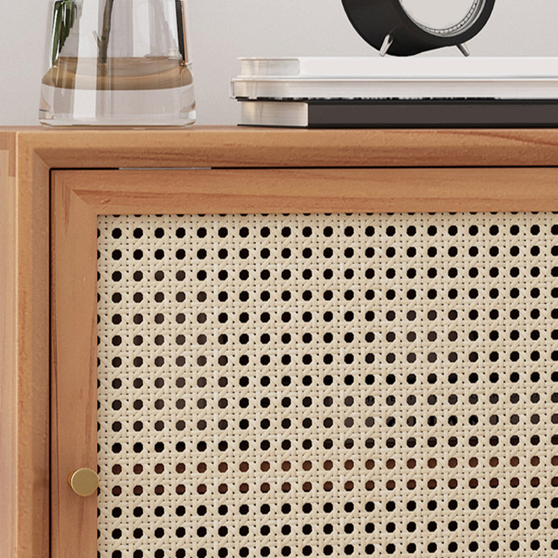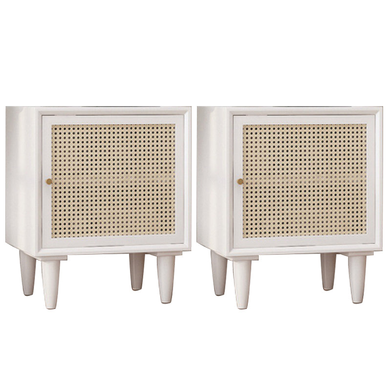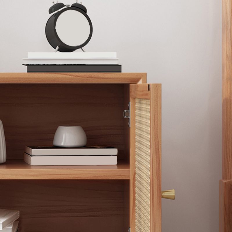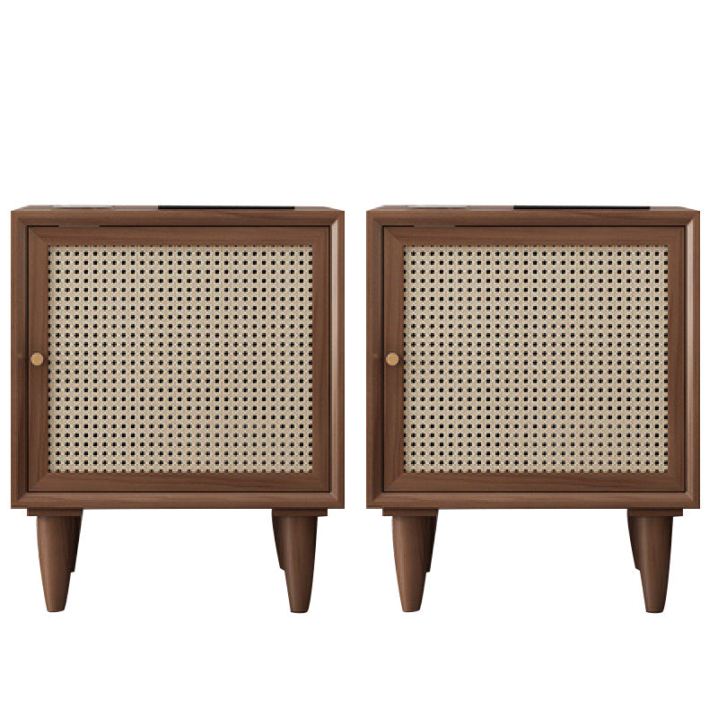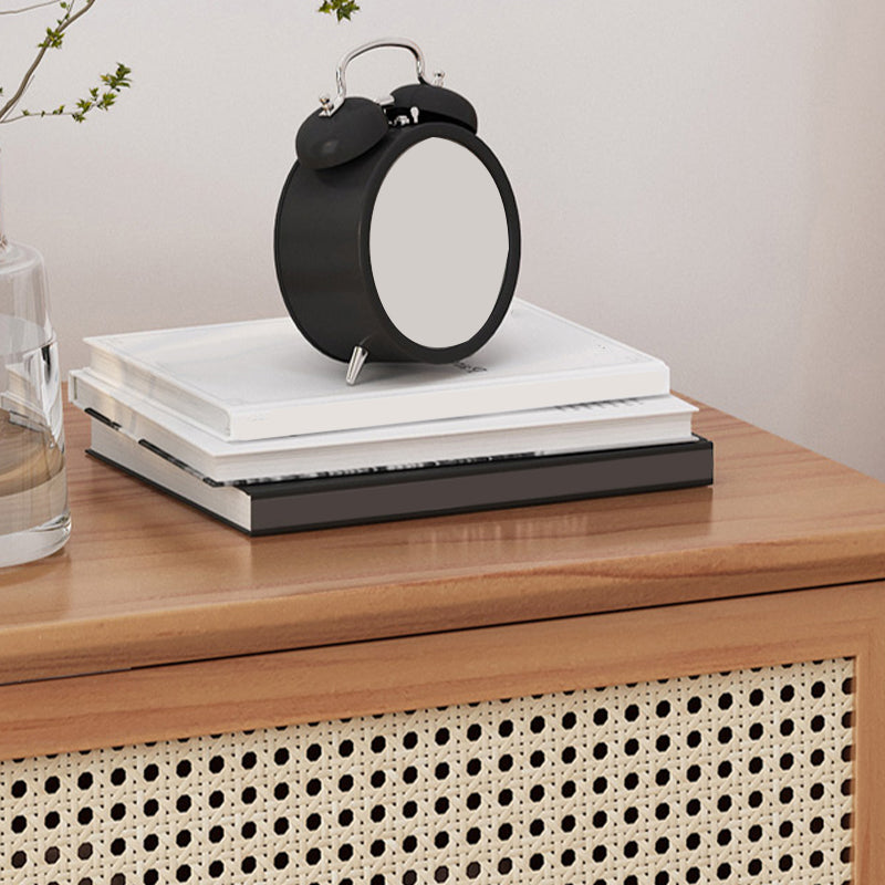 Contemporary Accent Table Nightstand Antique Finish Bed Nightstand with Doors
