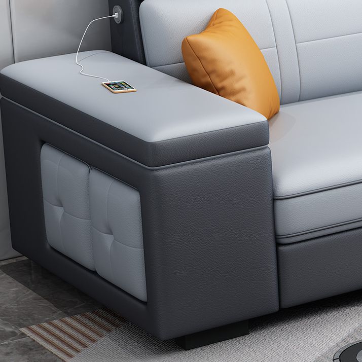 Contemporary Blue Faux Leather Sofa & Chaise for Living Room