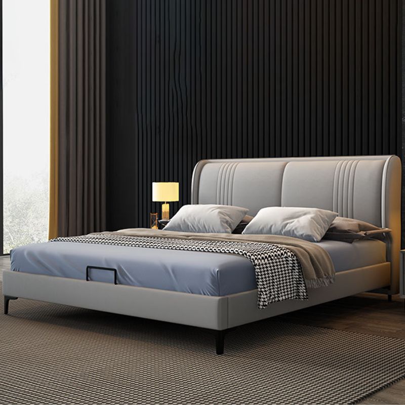 Contemporary Faux Leather Bed with Wingback Headboard and Metal Legs
