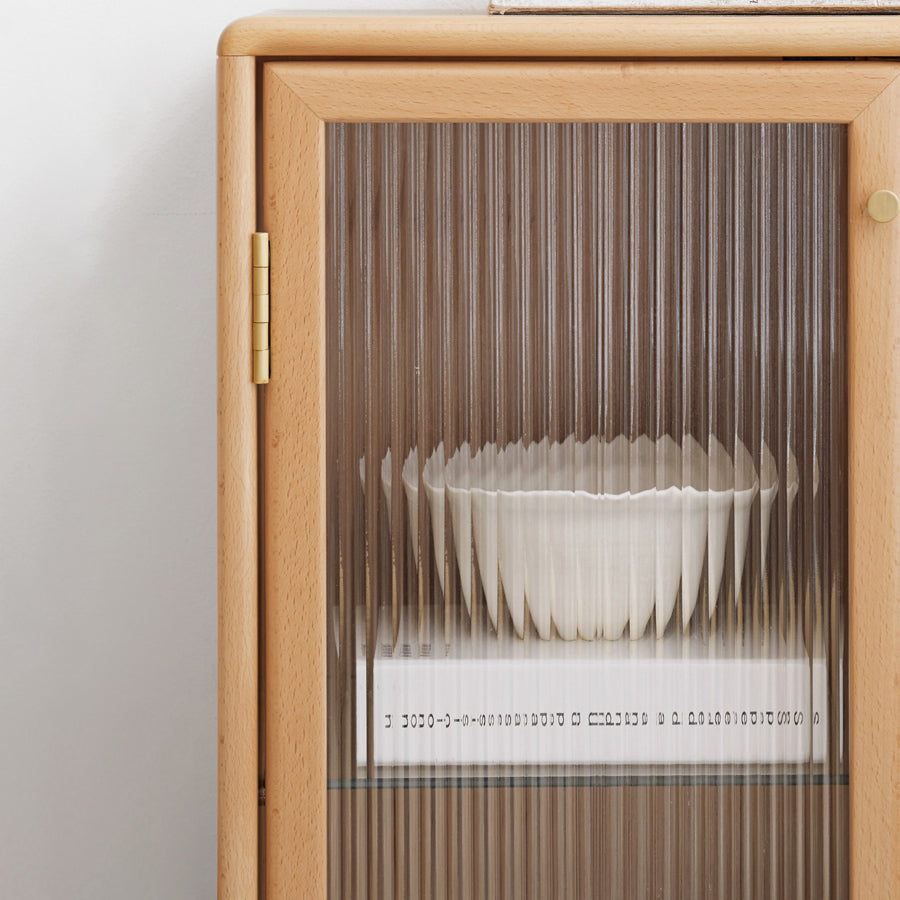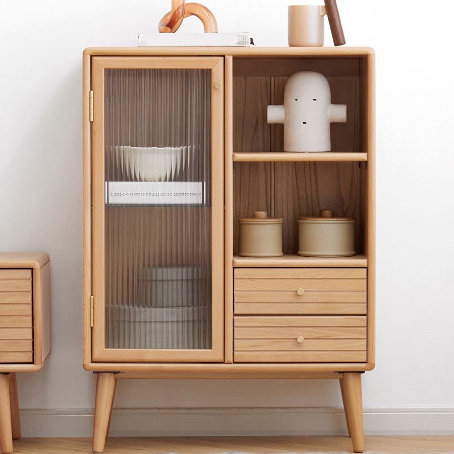Contemporary Glass Paned Solid Wood 2 - Drawer Living Room Accent Cabinet
