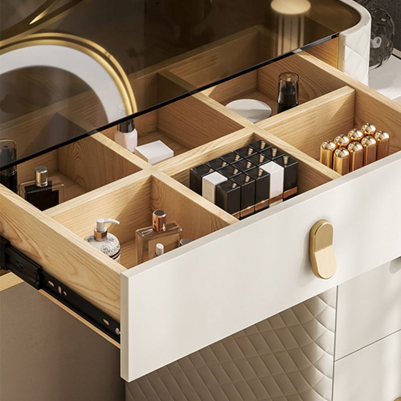 Contemporary Glass Top Vanity Desk Solid Wood Vanity Dressing Table
