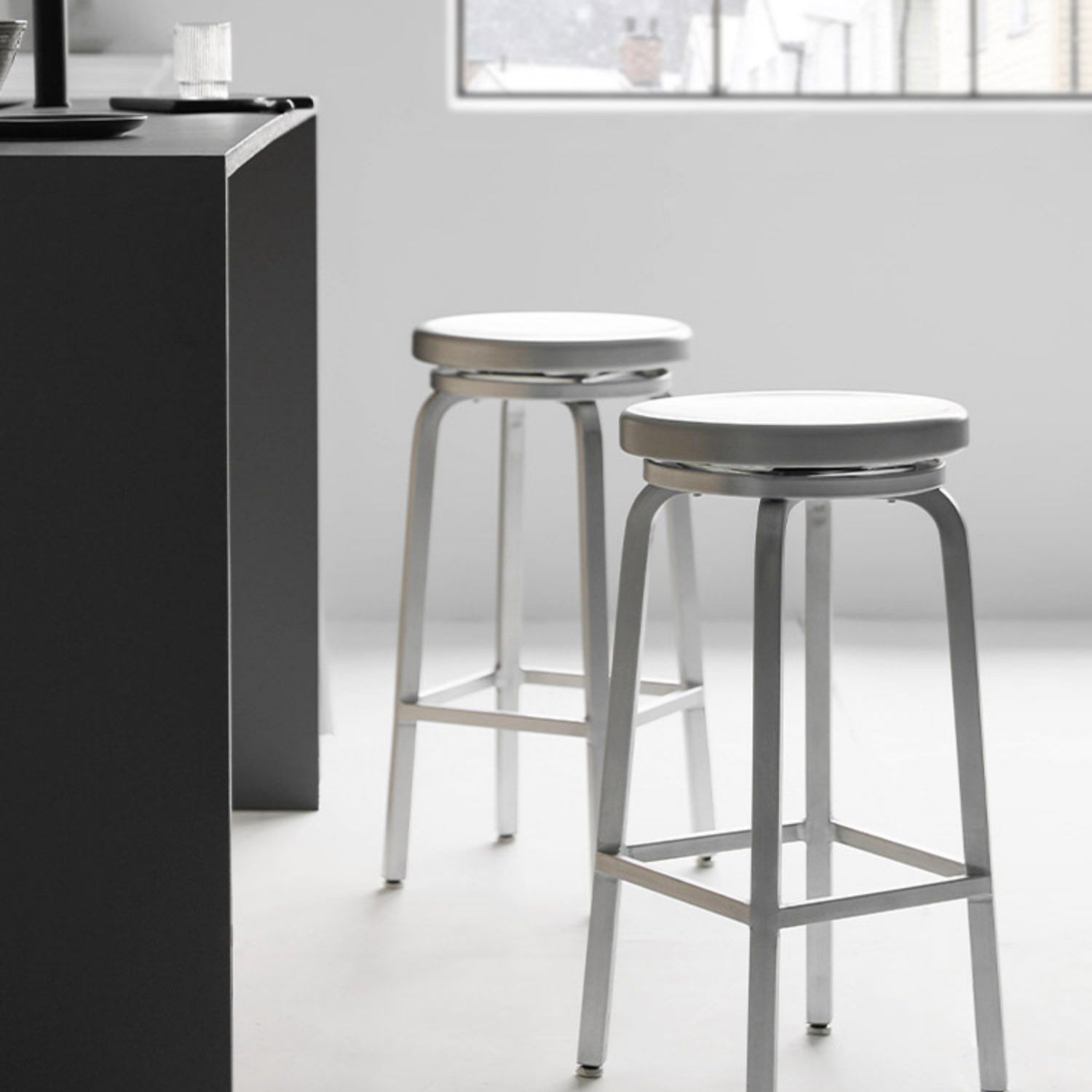 Contemporary Metal Backless Counter Stool in Silver for Home Use