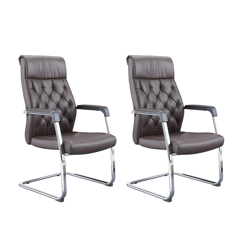 Contemporary No Wheels Chair Faux Leather Chrome Frame Office Chair