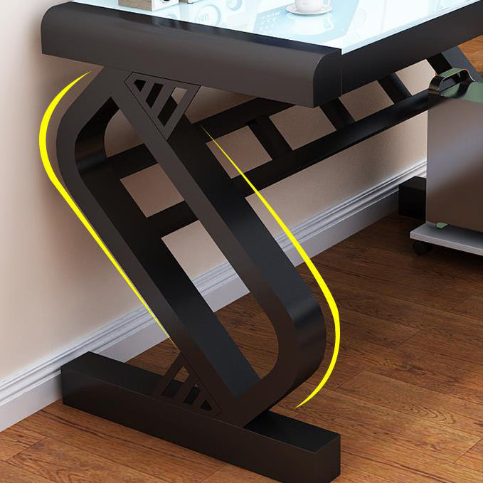 Contemporary Office Desk Antique Finish Glass Top Computer Desk with Metal Legs