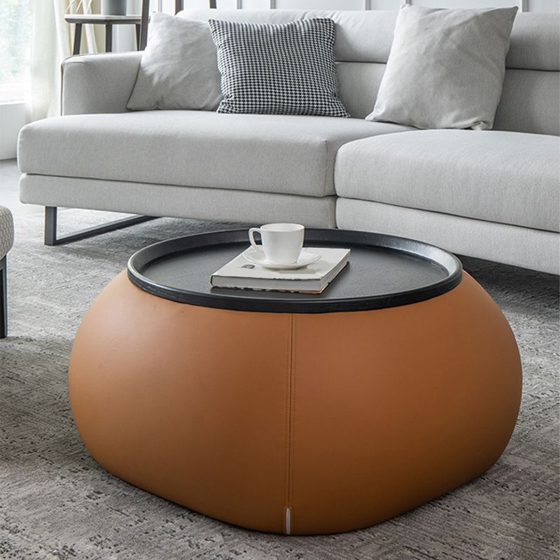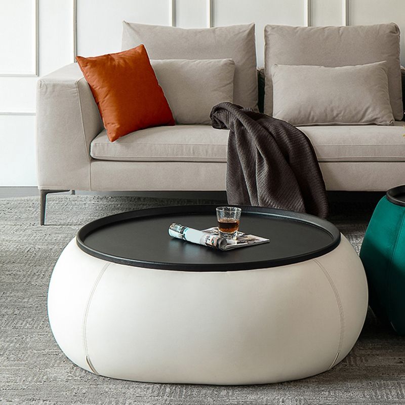 Contemporary Round Wooden Black Coffee Cocktail Table with Storage