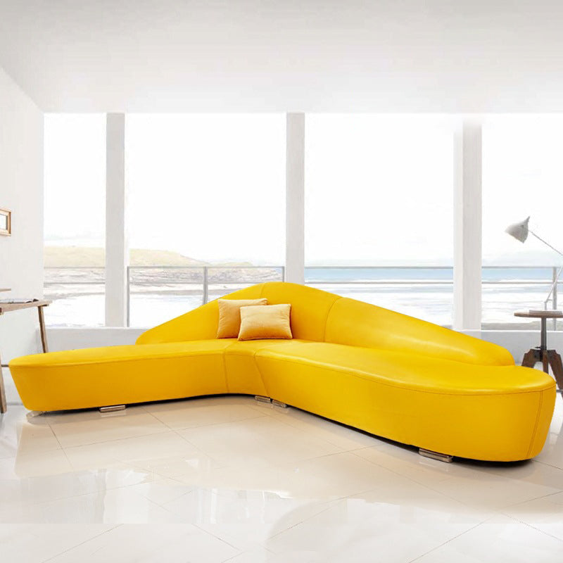 Contemporary Sloped Arm Seating Leather Sofa for Living Room