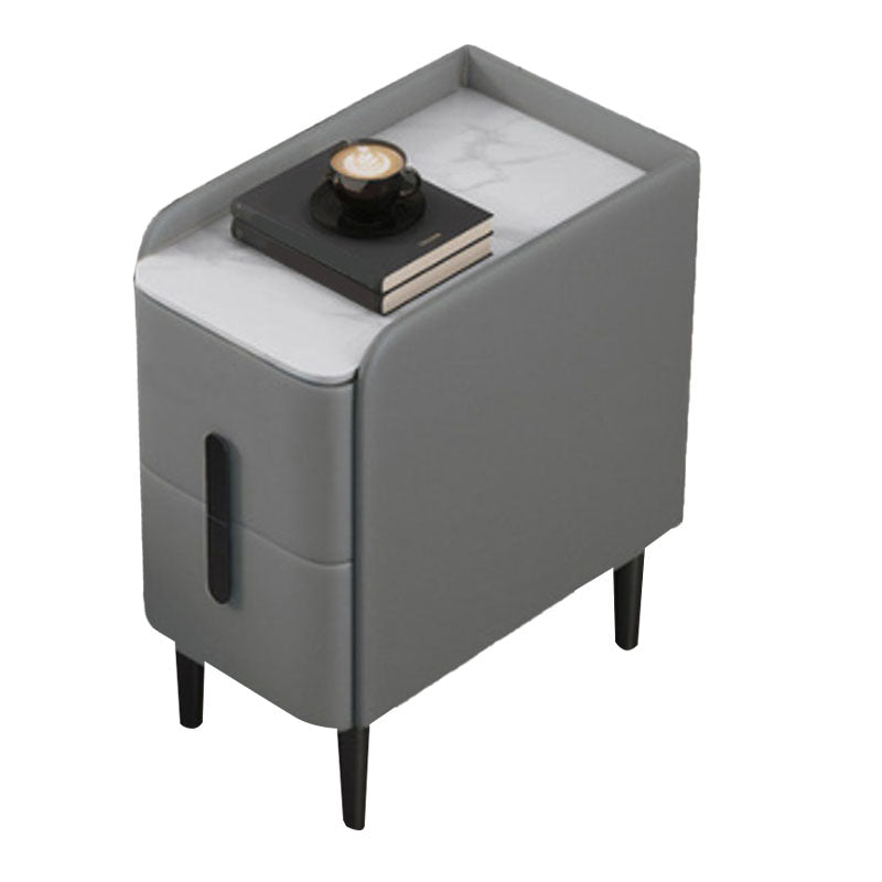 Contemporary Stone Bedside Cabinet with 2 Pine Drawers for Bedroom