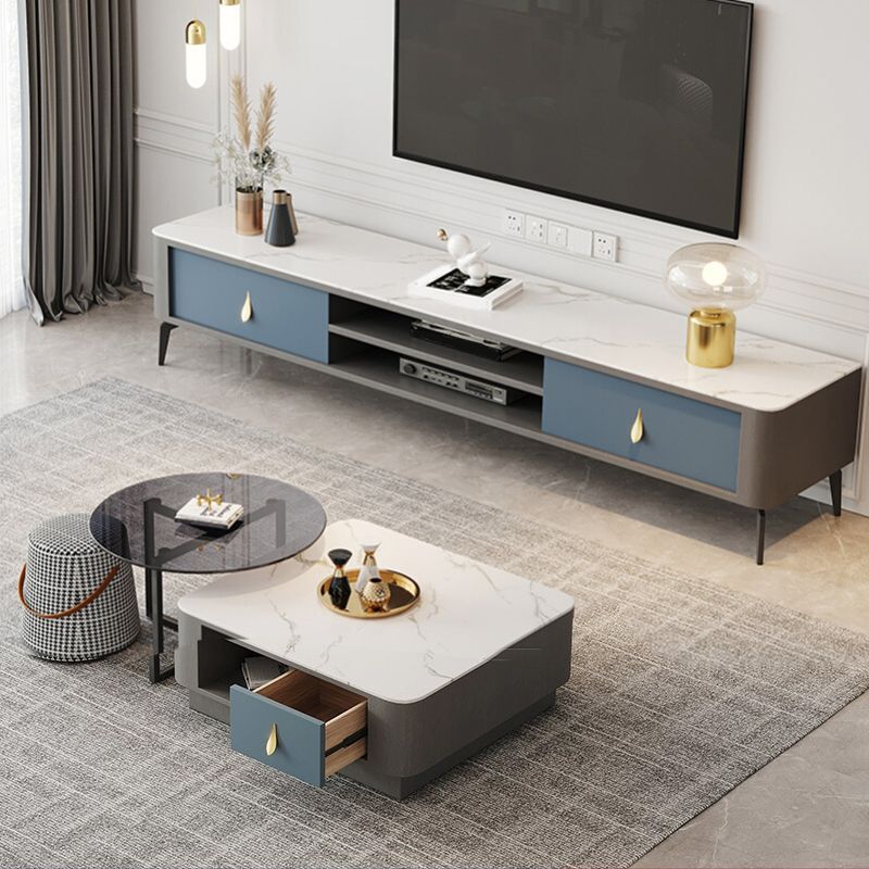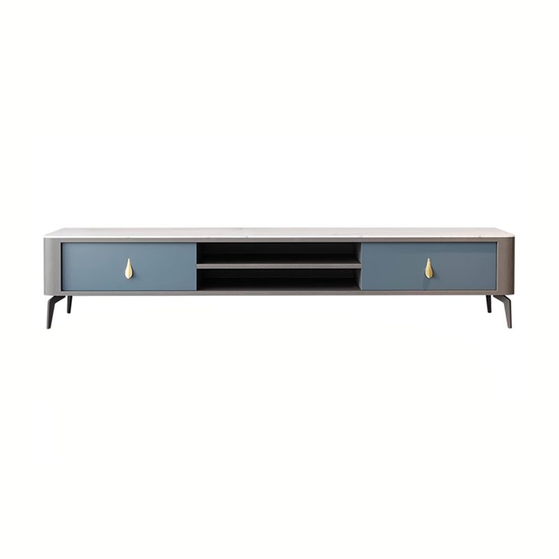 Contemporary Stone TV Stand Console with Shelf for Living Room