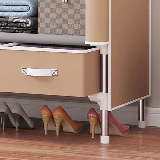 Contemporary Style Wardrobe Armoire Steel Frame Wardrobe Cabinet with Drawers