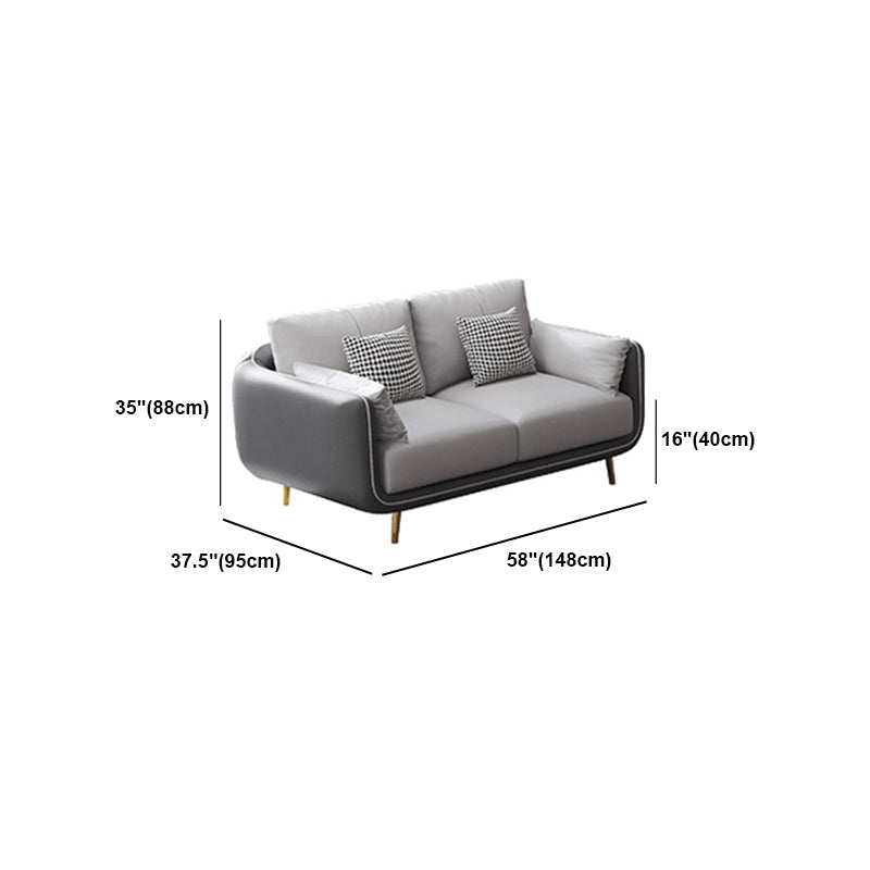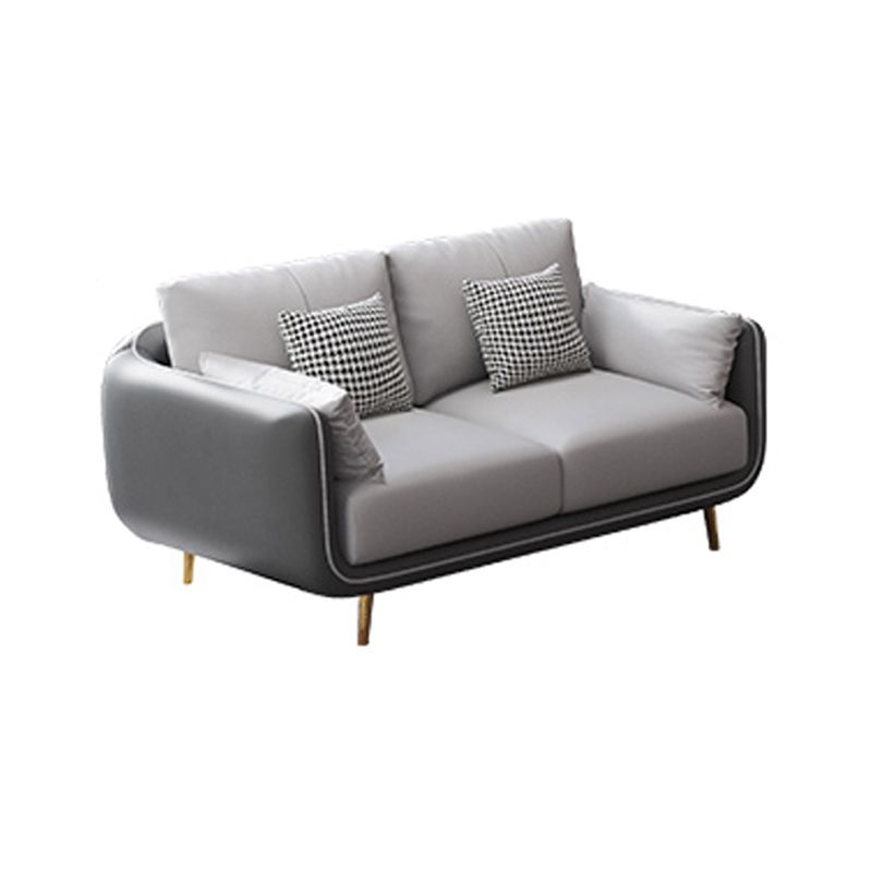 Contemporary Tuxedo Arm Standard Faux Leather Sofa Couch in Grey
