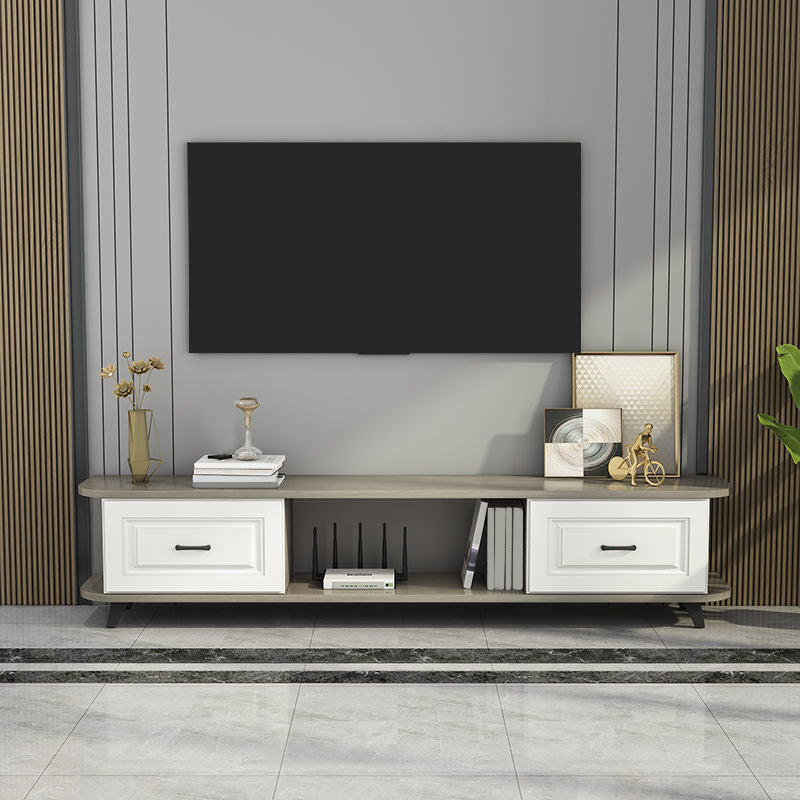 Contemporary TV Media Console Open Storage Wooden TV Console for Living Room
