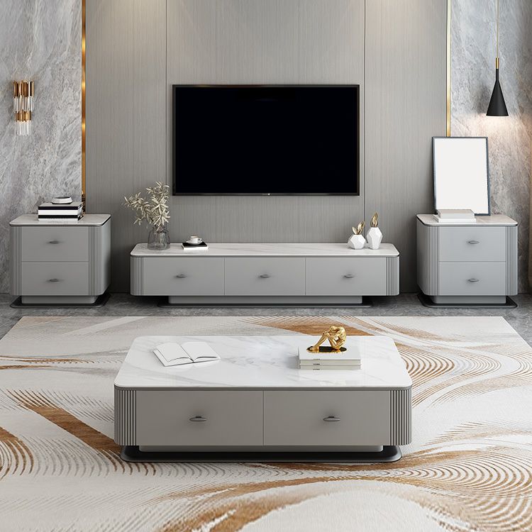 Contemporary TV Media Console Stone Stand Console with 3 Drawers