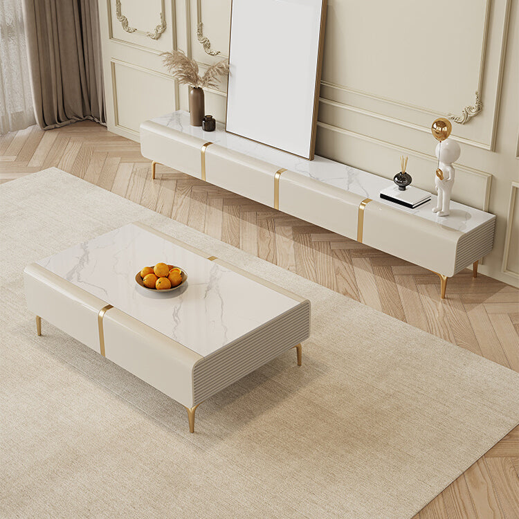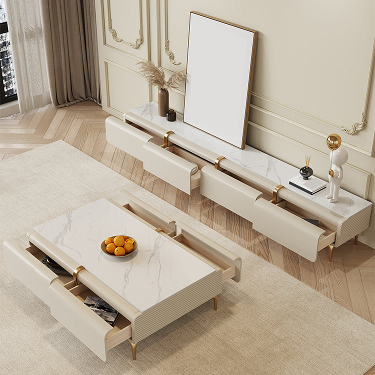 Contemporary TV Media Console Stone TV Stand Console with 4 Drawers