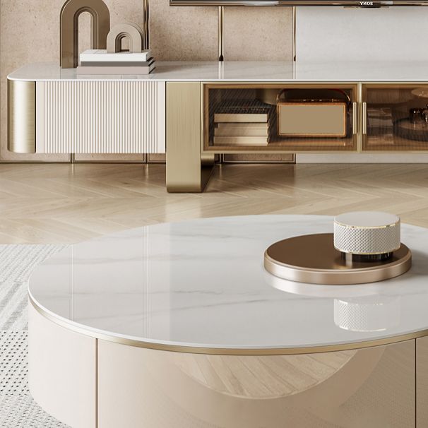 Contemporary TV Media Console Stone TV Stand Console with Drawers