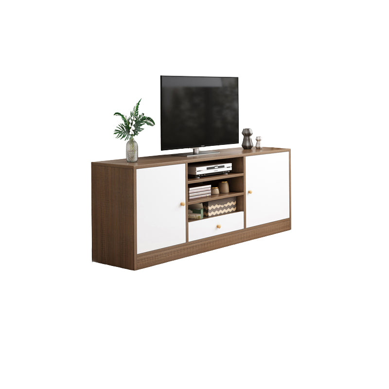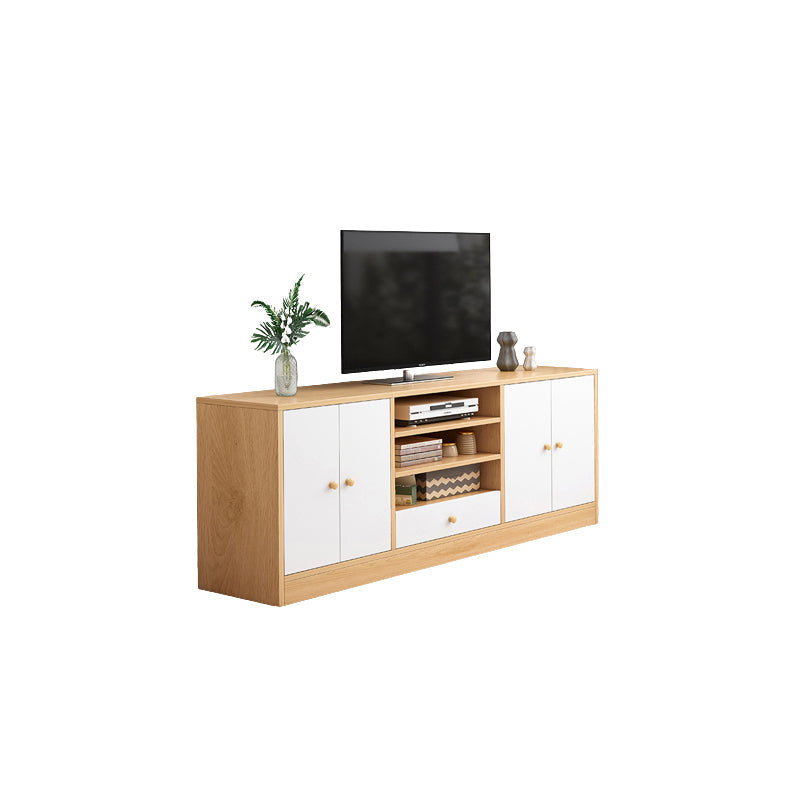Contemporary TV Stand Engineered Wood Open Storage TV Media Console with Media Shelves