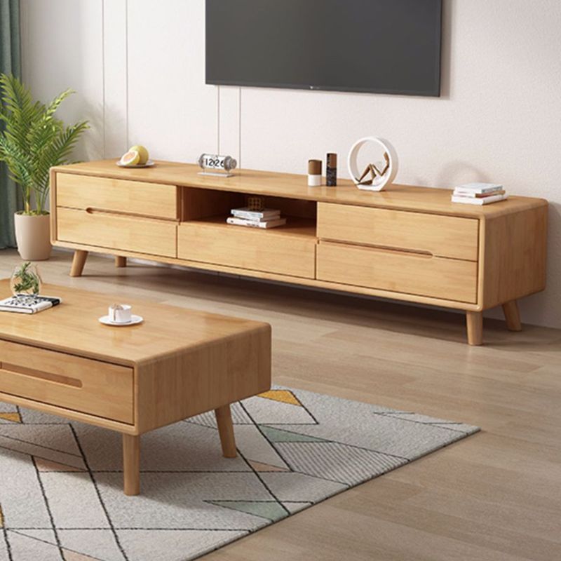 Contemporary Wood TV Stand Console Open Storage TV Media Stand for Living Room