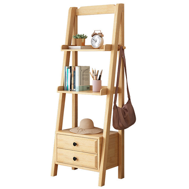Contemporary Wooden Bookcase 3 Shelves Bookshelf with 2 Drawers ,55.1" H x 14.2" W