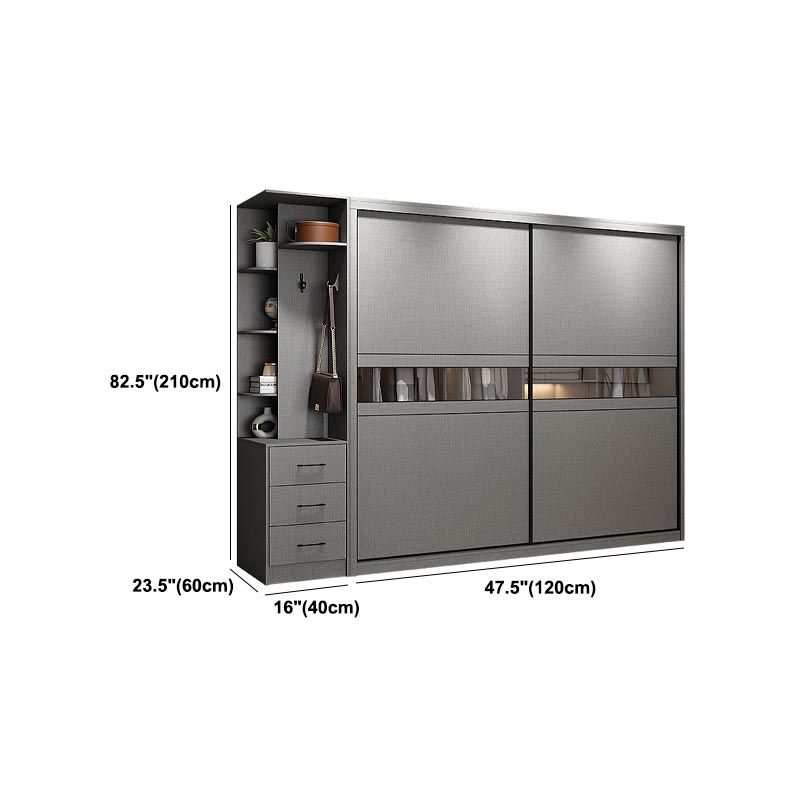 Contemporary Wooden Wardrobe Gray Colour Wardrobe Closet with Sliding Door