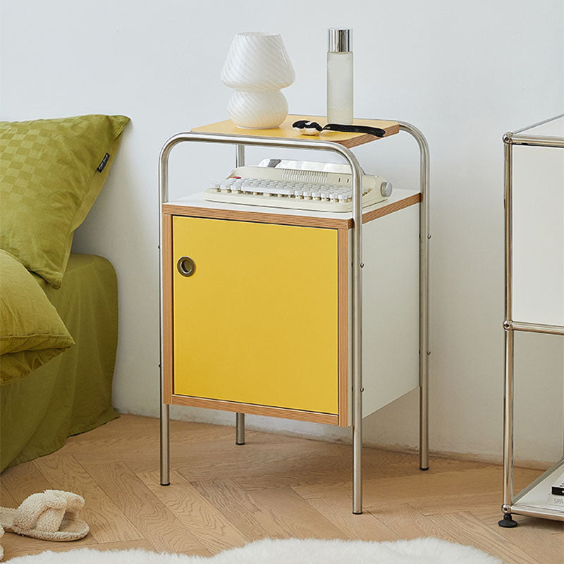 Contemporary Yellow Wooden Night Table with 1 Cabinet for Bedroom