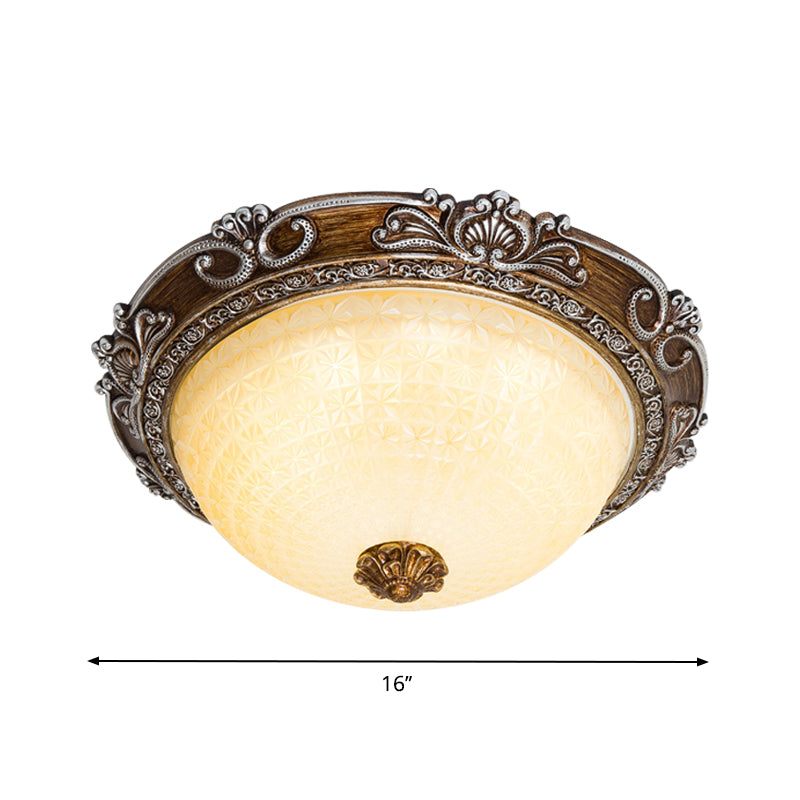 Countryside Bowl Flush Light Fixture Tan Glass LED Flush Mount Lamp in Brown for Bedroom, 14"/16"/19.5" W
