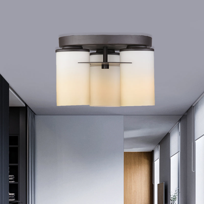 Countryside Cylinder Ceiling Lamp 3 Bulbs White Glass Semi Flush Mount Light Fixture for Bedroom