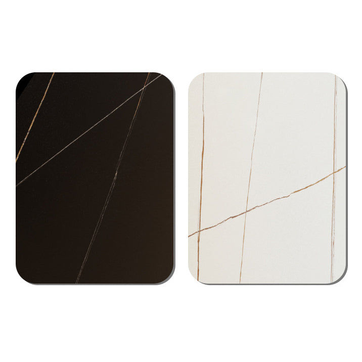 Curved Glam Office Desk Stone and Metal Writing Desk in Black and White