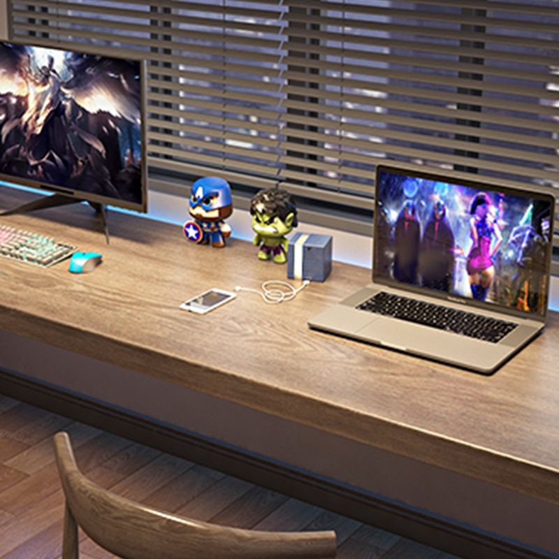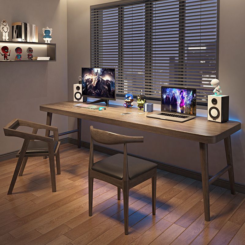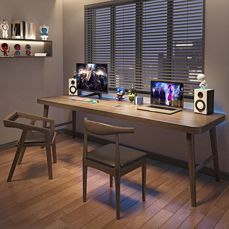 Curved Solid Wood Writing Desk Modern Style H-Shape Office Desk without Chair