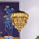 Cut Crystal LED Pendant Lighting Modern Chrome Tiered Tapered Dining Table Suspension Lamp