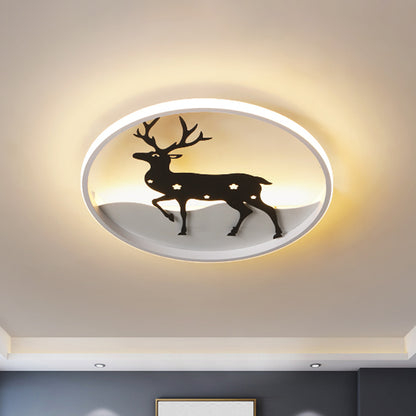 Deer Ceiling Light Fixture Cartoon Acrylic LED Black Flush Mount Lighting, Warm/White Light