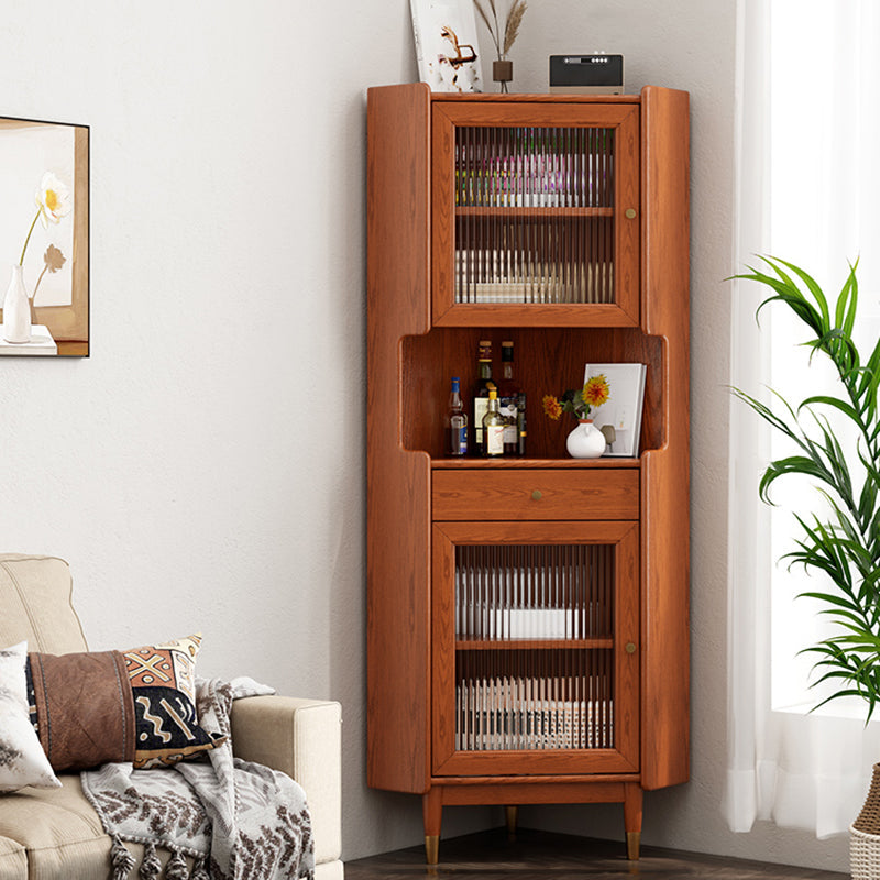 Design Wooden Storage Cabinet with 2 Glass Doors and Storage Shelf Modern