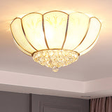 Farmhouse Bowl Semi Flush Mount Light Frosted Glass Ceiling Lighting in Brass with Orb Crystal Accent