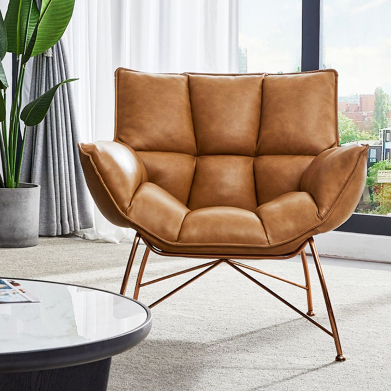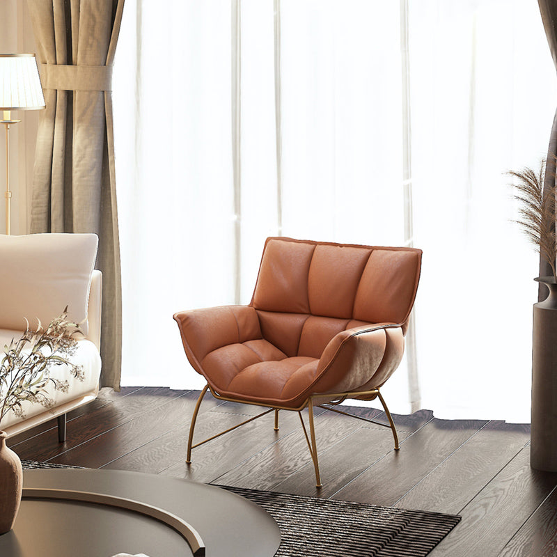 Faux Leather Arm Chair 27.55" Wide Arms Included Accent Chair with Biscuit Back