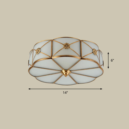 Flower Living Room Flush-Mount Light Antique White Glass Brass Ceiling Lighting with X-Brace