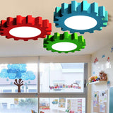 Gear Boys Room Flushmount Metallic 16"/19.5" Wide LED Kids Close to Ceiling Light in Red/Blue/Green Clearhalo 'Ceiling Lights' 'Close To Ceiling Lights' 'Close to ceiling' 'Flush mount' Lighting' 1906923