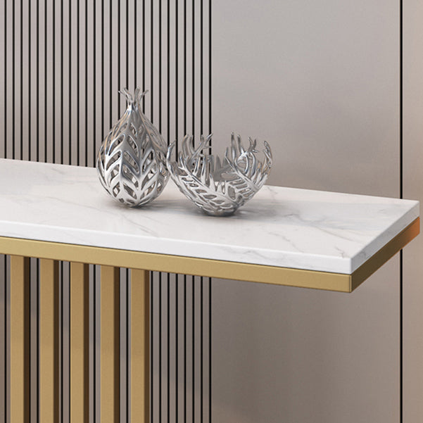Glam 31.5-inch Tall Console Table Stone Rectangle End Table with Abstract Base