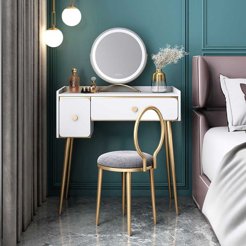 Glam 32.28" H Wooden 2-drawer Dressing Table Make-up Vanity Stool