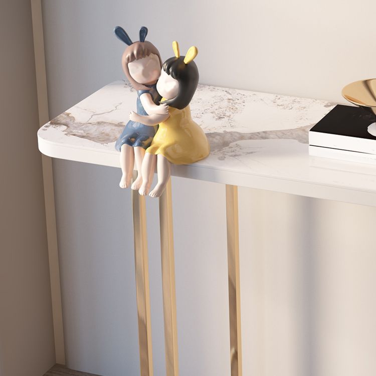 Glam Console Accent Table Rectangle Console Sofa Table in Stone
