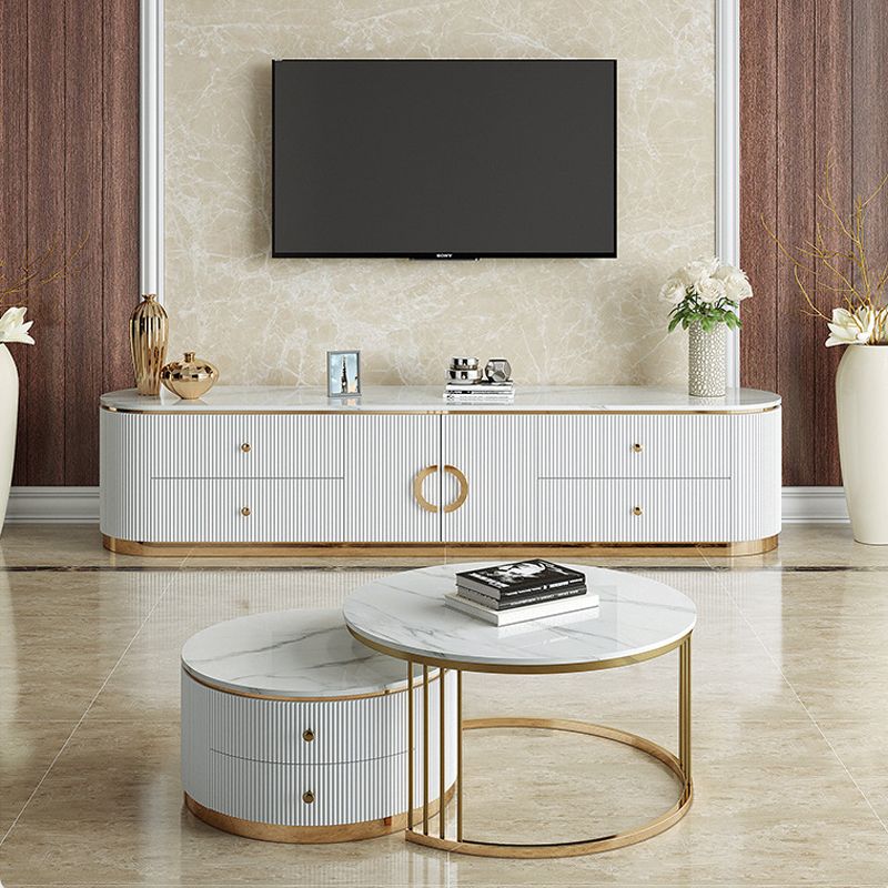 Glam Marble TV Console Enclosed Storage TV Media Stand with Drawers for Living Room