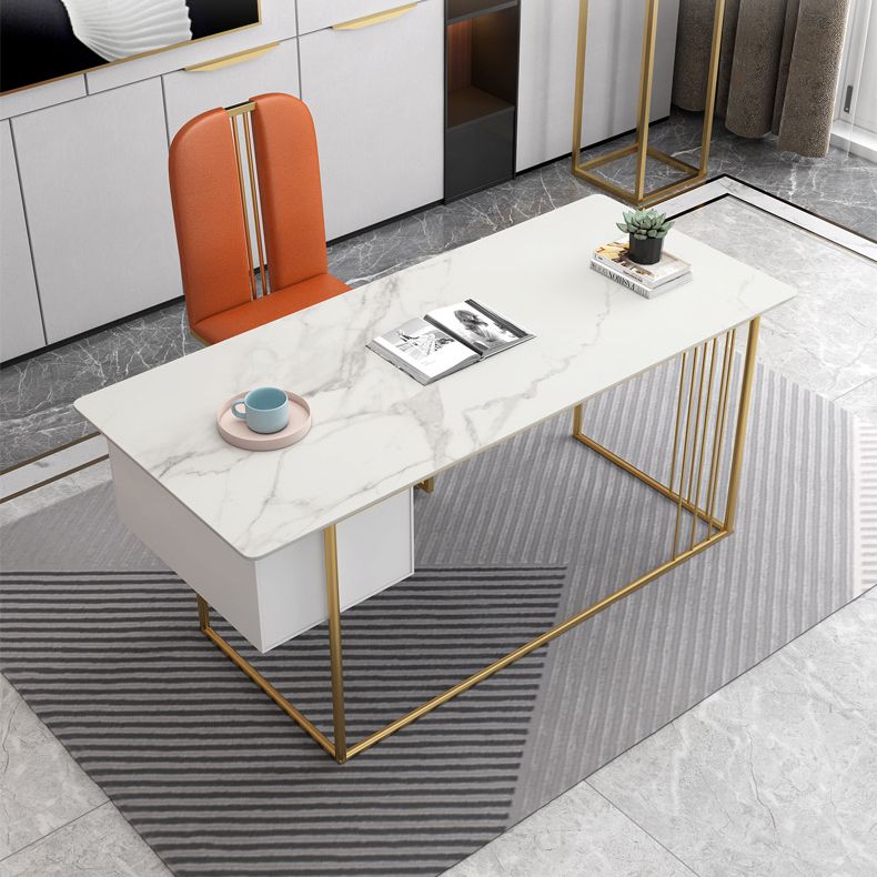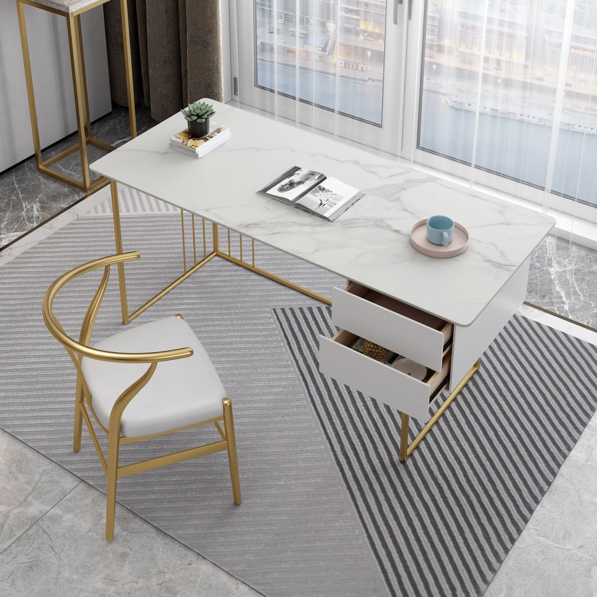 Glam Office Desk 23.62"Wide Curved Executive Desk with 2 Storage Drawers