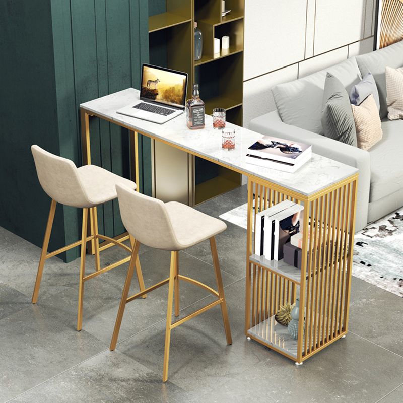 Glam Rectangle Bar Table Set 1/3 Pieces Faux Marble Pub Set for Dining Room