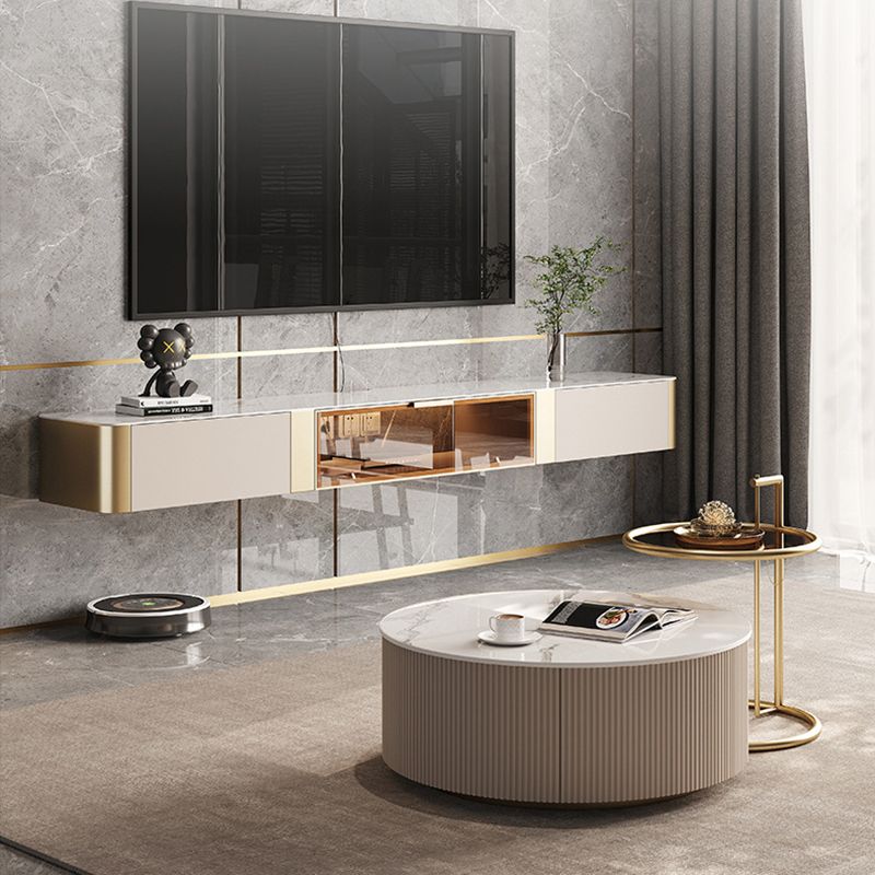 Glam Stone TV Stand Console Wall-mounted TV Media Stand with Storage for Living Room